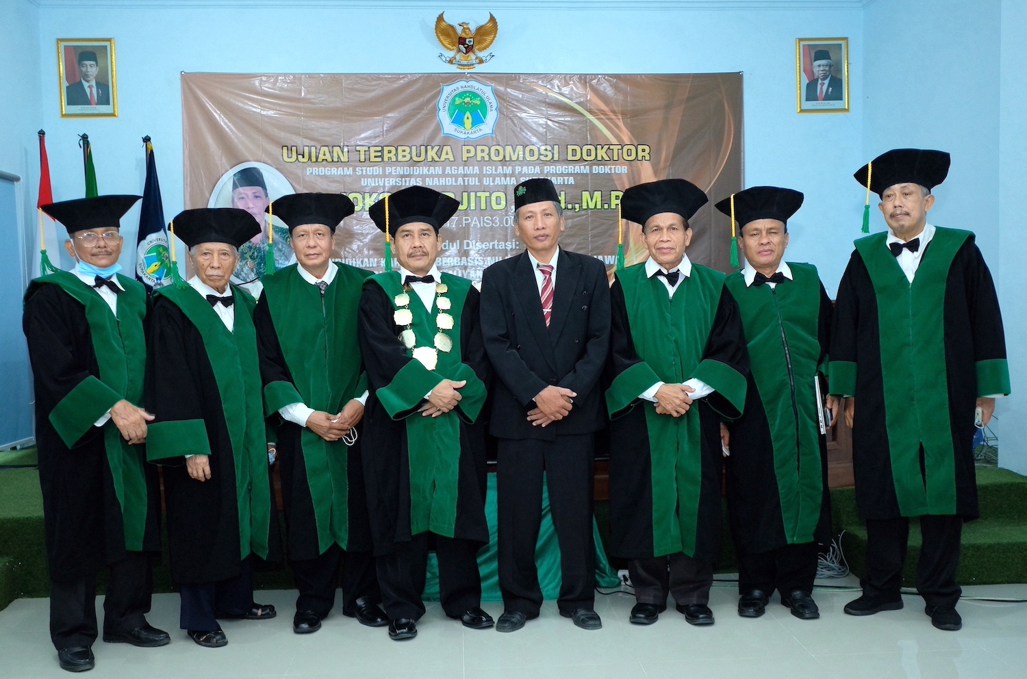 Sidang promosi doktor dipimpin Rektor UNU Surakarta Mufrod Teguh Mulyo. “Semoga bertambahnya lulusan program doktor ini, UNU Surakarta terus tumbuh dan berkembang menuju perguruan tinggi Islam unggulan, dengan standar internasional pada 2030,” ucapnya.