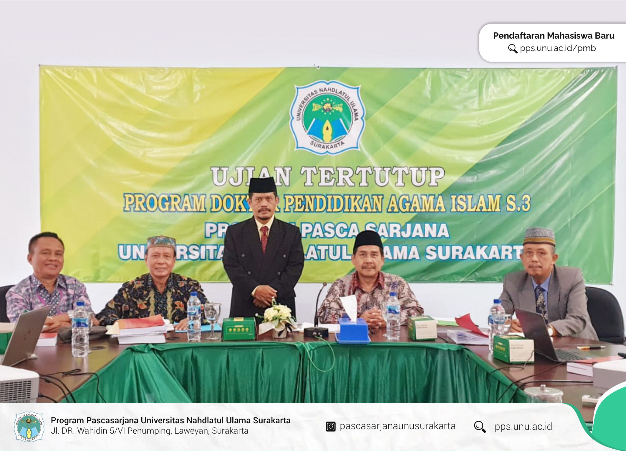 PPs UNU Surakarta – Program Pascasarjana UNU Surakarta mengadakan Ujian Tertutup Disertasi Gelombang II tahun akademik 2021/2022 pada 23 Juni 2022. Ujian tertutup ini merupakan tahapan penting bagi mahasiswa S3 UNU Surakarta dalam menyelesaikan pendidikan doktoral sebelum memasuki ujian terbuka promosi doktor.